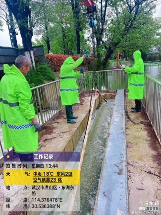4月9日,武汉遭遇破纪录暴雨,防汛形势十分严峻。武汉文旅集团东湖文旅旅联物业公司第一时间启动防汛应急预案,统筹各项目协同作战。全体人员坚守一线,争当防汛“排头兵”,全力守护管辖区域平稳有序运行。