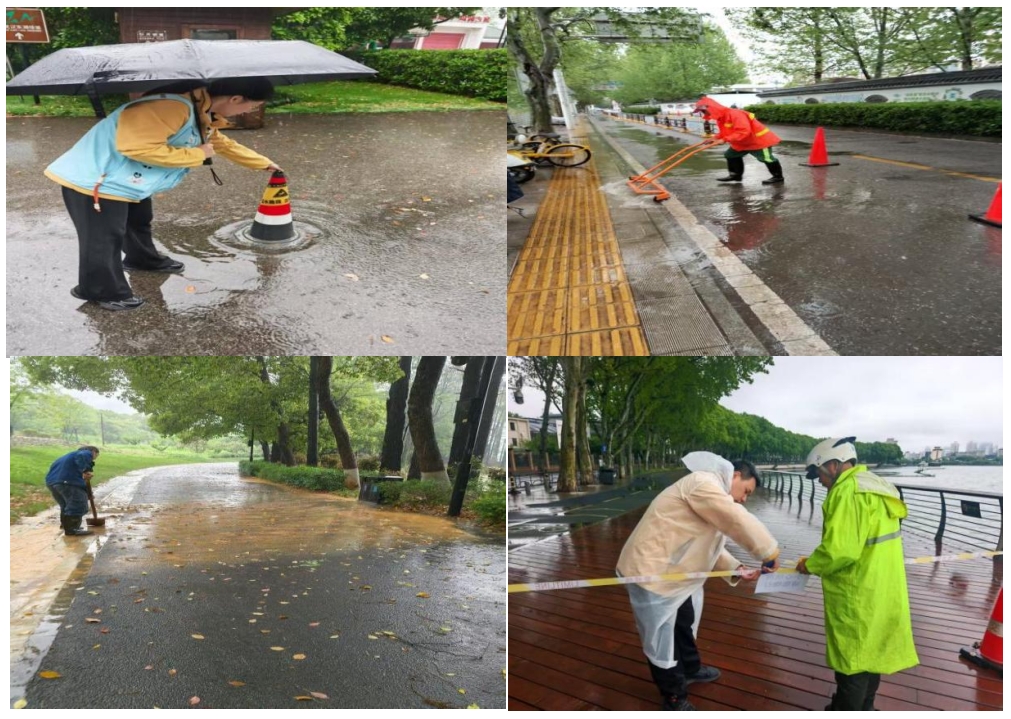 绿道一、二、三期累计出动巡查及应急人员超80人次,检查泵站11处,处置积水点30余处,疏通排水口20余处,设置警示锥桶26处、警示标识多处,及时处置倒伏树木,保障游客安全。