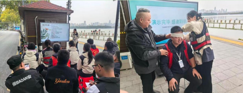 为夯实服务基础、提升应急处置能力,物业公司绿道三期项目于10月31日在凌波门组织开展景区知识及急救技能专项培训,共30名员工参加。此次培训从游客引导、咨询应答、场景讲解等方面细化服务标准与流程。针对凌波门临水环境特点,特别强化水域安全警示知识讲解,细化不同场景下服务要点。