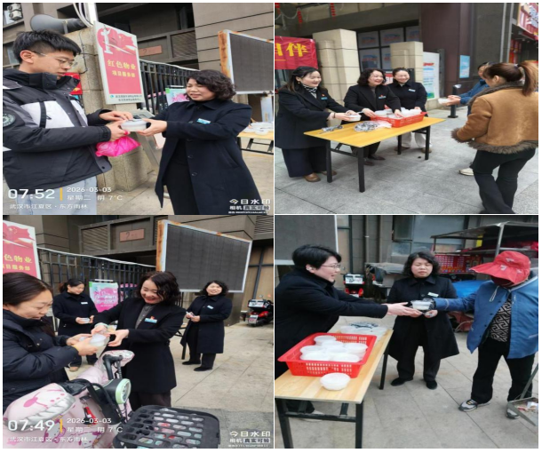 正月十五元宵佳节,为营造温馨团圆的节日氛围,东方雨林物业服务中心在园区主出入口开展了“元宵送温暖”活动,为小区业主送上热腾腾的汤圆与节日祝福。