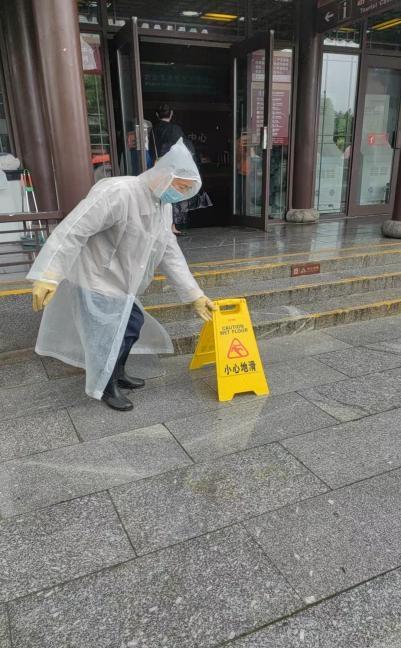 黄鹤楼项目出动98名应急人员,处置积水点30处,设置防滑警示牌72个,有效防范人员滑倒等风险。