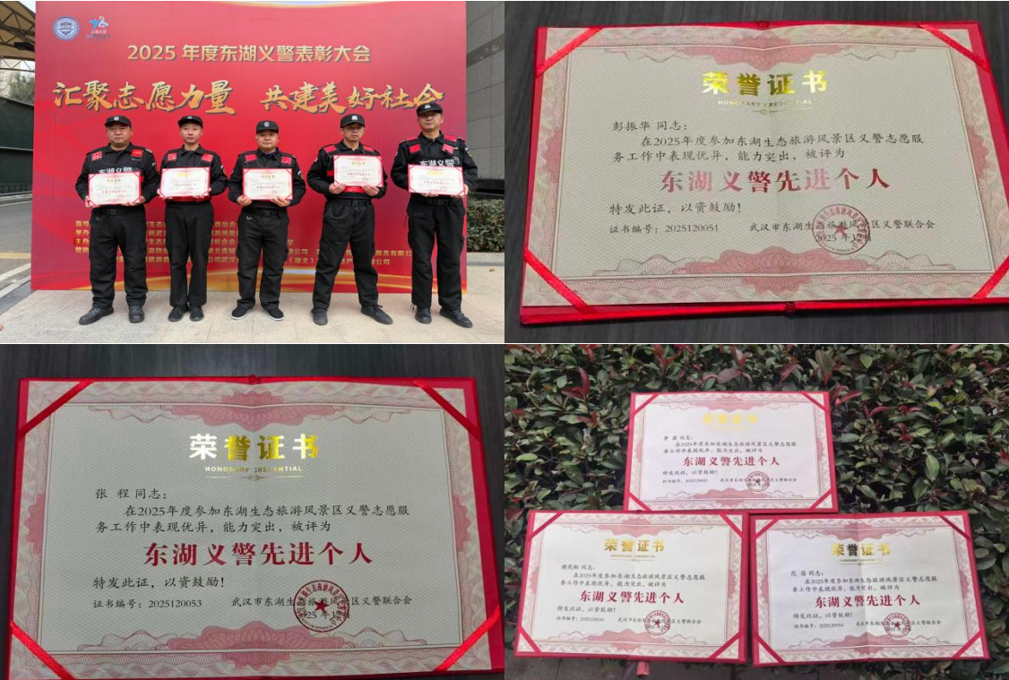 2025年12月31日,东湖生态旅游风景区隆重举行东湖义警表彰大会,表彰先进典型、凝聚群防群治合力。绿道三期项目部表现突出,8名员工荣获“2025年度东湖义警先进个人”称号。 此次受表彰的绿道三期项目部张程、彭振华、范昌、马寅、谢岚椒、雷军等8...